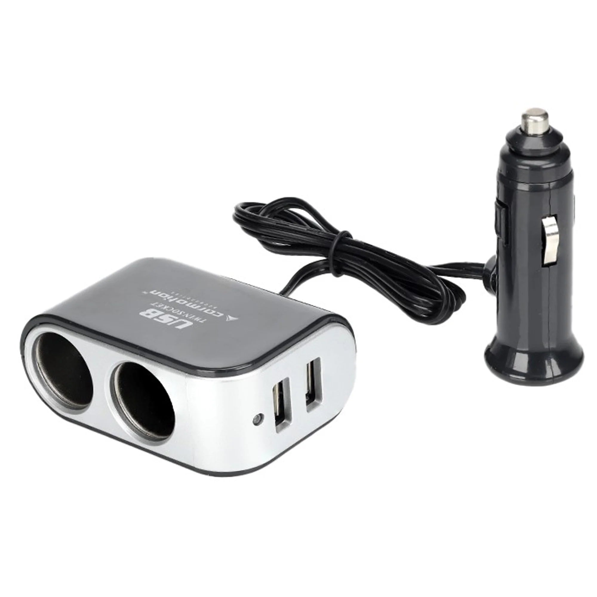 Dual Car Cigarette Lighter Splitter with 2 USB Ports 3.1A