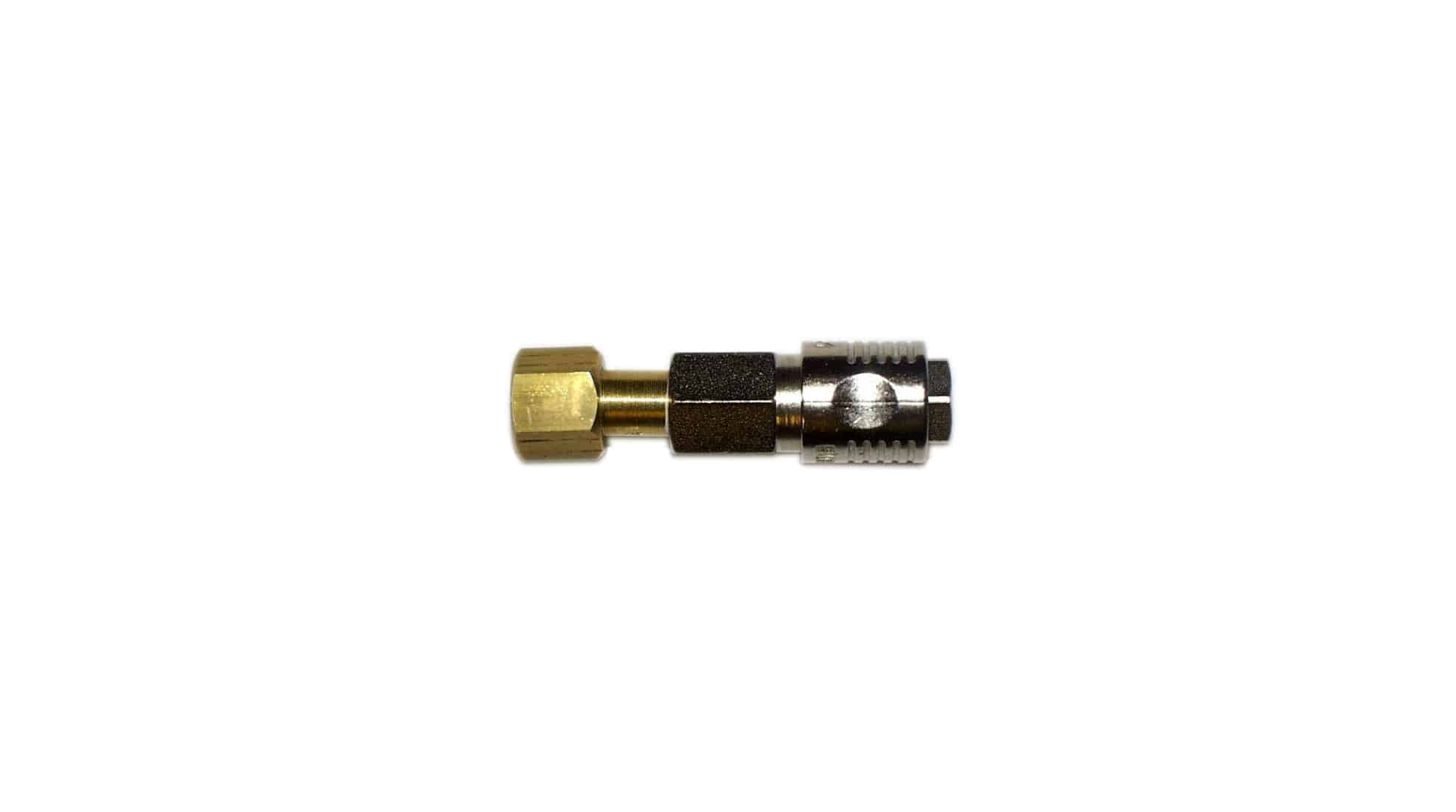 Facilita la conexión de tu depósito de aire con este práctico adaptador de conexión rápida. Diseñado para acoplarse a la válvula del depósito, permite unir fácilmente mangueras o accesorios compatibles. Su formato compacto y funcional lo convierte en una solución ideal para quienes buscan rapidez y comodidad en el manejo de aire comprimido.